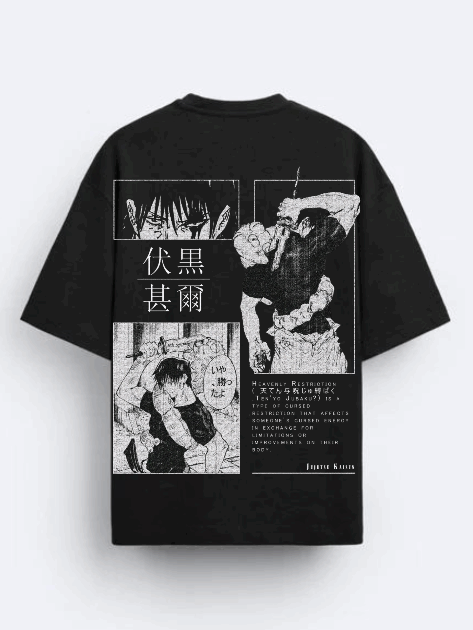 Unleash the power of Toji Zenin with this premium back-printed oversized T-shirt. Made with 100% soft cotton, it delivers unbeatable comfort, bold anime style, and top-tier print quality that stays sharp wash after wash. Perfect for anime lovers who want a clean, powerful, and aesthetic streetwear look.